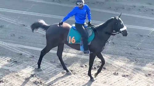 14日朝の美浦トレセン。1頭の2歳馬の動きに調教スタンドの報道陣がざわついた。緑のゼッケン『16』を着けたルージュスエルテ(美浦・国枝栄厩舎、牝2歳、父ハーツクライ、母リュズキナ)が、Wコースの直線で他馬が止まって見えるほどの加速力を披露。