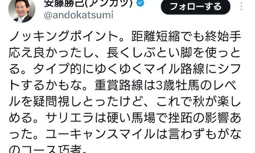 アンカツのツイートまんま競馬民のおっさんみたいな意見で1周回って好感が持てる