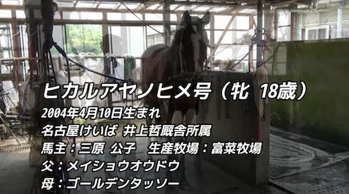 “名古屋の至宝”と呼ばれ多くのファンから愛された国内では最高齢の現役競走馬「ヒカルアヤノヒメ」が15日、心不全のため息を引き取りました。19歳でした。