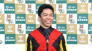 「スタッフや牧場の方がしっかり仕上げてくれて、すごくいいコンディションでした。自信をもって乗れましたね」と北村宏はまずは万全の仕上げに感謝。「前回よりもスタートも上手に出てくれて、冷静に走れました。追い出してからもいい伸びでしたね」とレースを振り返り、「(正面から見たスタンドは)いい景色でしたね」と自身8年ぶりのGⅠの味をかみしめていた。