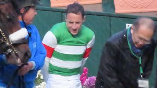 口取り写真撮影……で寒そうなルメール騎手。