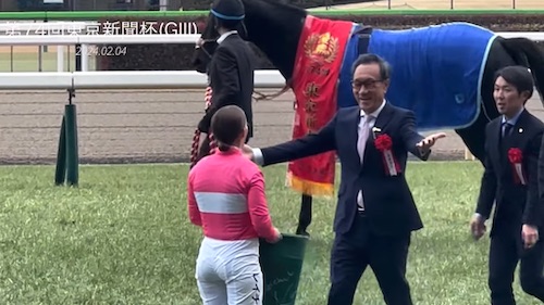 サクラトゥジュールの馬主が表彰式でキング騎手にハグを求めるも、キング騎手が拒否